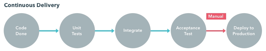 Continuous Delivery (CD) is an extended Continuous Integration process with additional steps, producing an installable outcome of the software or a delivery package (which can be a binary file, a zip archive or an installer executable). This process works if you don’t rely on automated tests and you need to control when software is shipped to production.